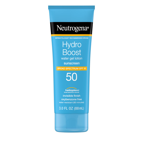 Neutrogena? Hydro Boost Water Gel Lotion Sunscreen with Broad Spectrum SPF 50 delivers superior broad spectrum UVA/UVB protection and hydration with a water-light, refreshing feel. This water-resistant sunscreen lotion with SPF 50 leaves skin looking healthy and moisturized for up to eight hours without any greasy residue or white marks. The non-greasy sunscreen has a light, clean feel and layers invisibly under makeup. Neutrogena? Hydro Boost Water Gel Lotion Sunscreen with Broad Spectrum SPF 50 is oil-free and non-comedogenic, which means it won?t clog pores